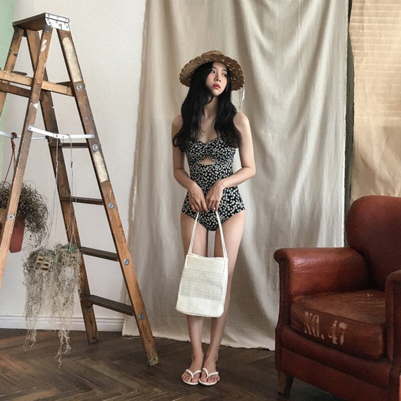 レディース水着 レディース 水着 キュート 花柄 フラワー 肌見せ ワンピース水着 ワンピースタイプ ワンピース ワンピ 背中開き 背中見せ ホルターネック 黒 ブラック 清楚 | y-boueki -import swimwear -