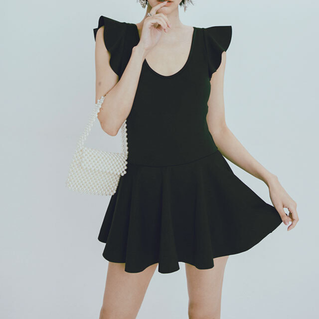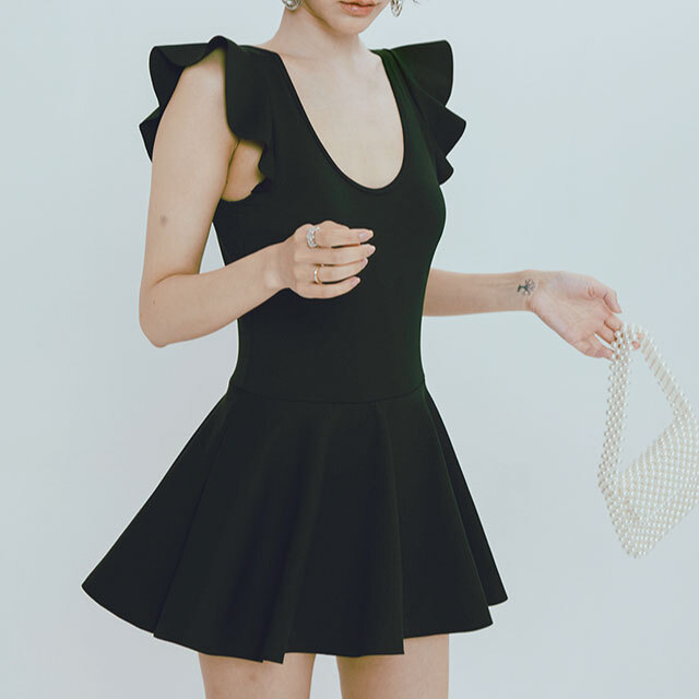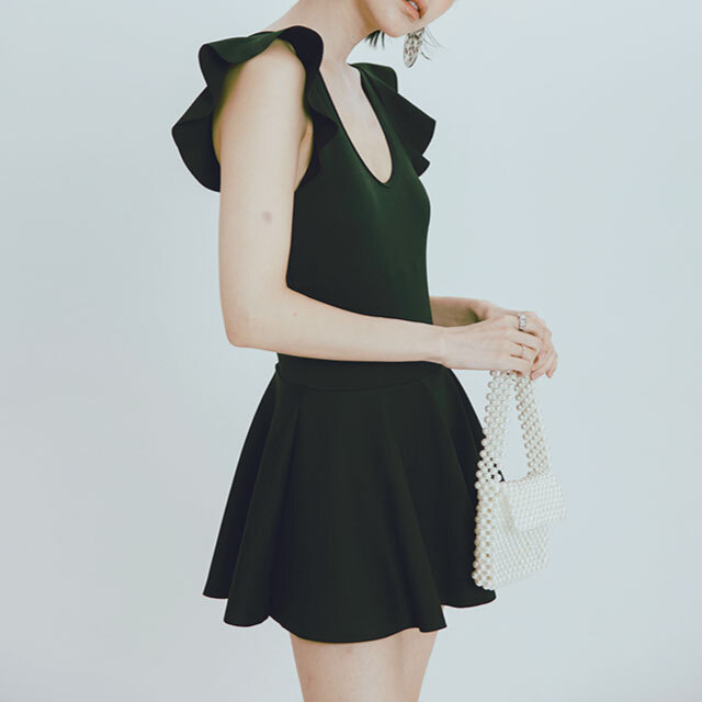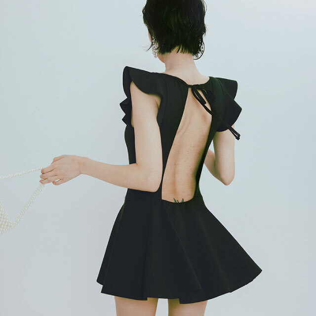 大きく開いた胸元、そして背中開きがちょっぴりセクシー◎