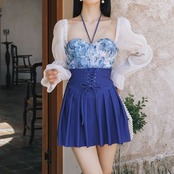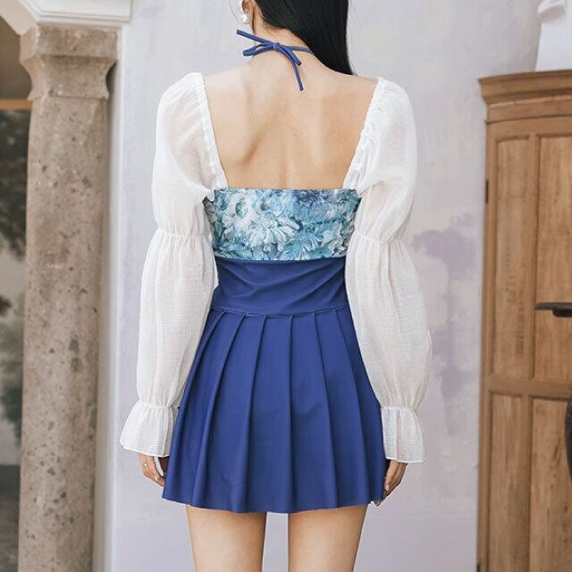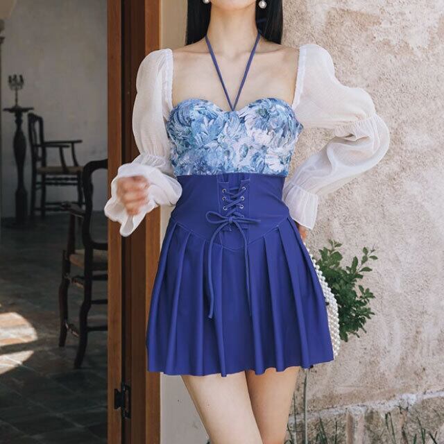鮮やかな青色と華やかな花柄が魅力のワンピース水着です。