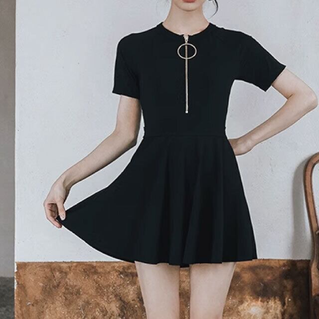 シンプルなブラックカラーが魅力のワンピース水着です。